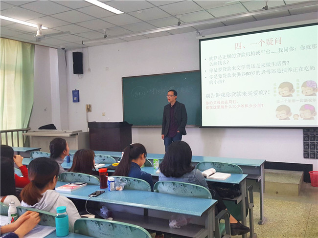 今天的概论课上,播报新闻的同学谈的是热点话题“校园网贷”。“校园网贷”对于大学生而言,究竟是甜美的蛋糕?还是充满剧毒的苹果?赖伟老师通过校园周围各种网贷宣传乱象,分析其表象背后的种种“杀机”,模拟了一次大学生中招的全过程,揭露了“校园网贷”真实面目。正是利用了大学生对新鲜事物的好奇心理,盲目的消费观念,诚信意识、风险意识等的不足,“校园网贷”的局才能无往不利。赖老师由浅入深,发挥哲学社会科学育人功能,理论解释贴近学生生活的校园网贷现象,用同学们喜闻乐见的方式引导同学们正确认知“校园网贷”,以及教给已“校园网贷”同学正确处理问题解决问题的方式。听了赖老师的课后,同学们都鼓掌起来,纷纷表示今后要正确看待身边类似“校园网贷”等的诱惑,生活中可以有“诗和远方”,但更应该脚踏实地。