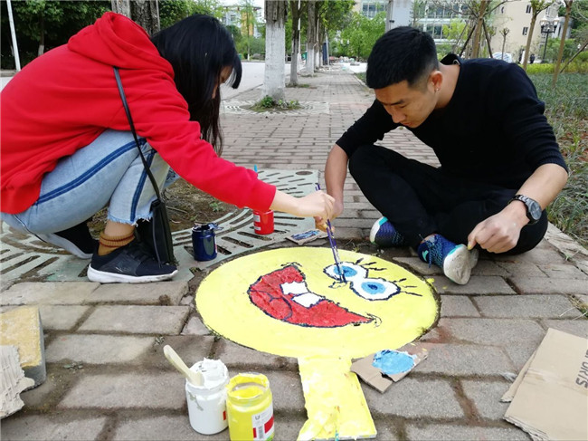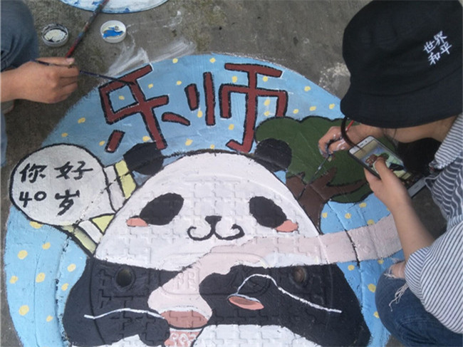 为迎接乐山师范学院40周年校庆盛典,推进工作作风和校园文化建设,丰富同学们的课余生活,为同学们创造一个更加富有灵气的校园氛围,4月4日至9日文学与新闻学院第二学生党支部联合美术学院青志中心共同开展了一场校园井盖涂鸦活动。