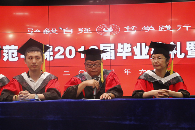 6月20日上午,文新学院在旷怡楼学术报告厅举行2018届毕业生毕业典礼暨授位仪式。学院院长任志萍,党总支书记熊泽文,副院长何晓苇,党总支副书记胡平建,教师代表王斌、邓帮云、杨晓军、张丽萍、王钊熠、李雅岚,以及全体辅导员和2018届毕业生参加了此次典礼,由胡平建主持。