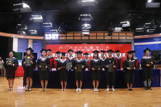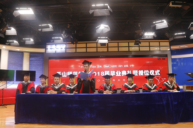 第二阶段,进行授位仪式,由胡平建公布获得2018届优秀毕业论文(设计)名单,王耀老师逐一宣读授位名单,符合授位条件的毕业生依次上台接受学位授予。最后全体同学齐唱校歌“放飞梦想”并与老师同学合影,本次典礼圆满落幕。