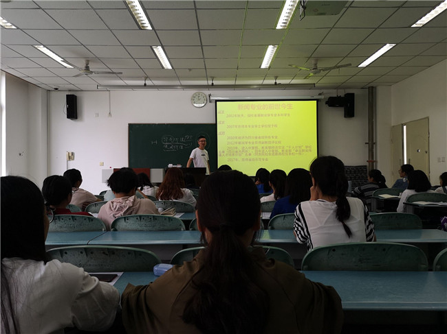 在专业负责人解读完人才培养方案之后,各课程老师围绕专业介绍、如何学习专业、专业未来方向这三方面进行展开导论,刘传启等三位老师对师范生语言及汉语教学类专业课程进行了介绍,邓芳等五位老师等则对师范生文学类专业课程进行了介绍,学院新闻专业负责人廖建国讲述了新闻学专业的前世今生,杨晓军老师则对新媒体行业进行了简要介绍。学院的专业导论课还邀请了相关专业行业专家以及学院高年级优秀的师兄师姐与新生进行交流。