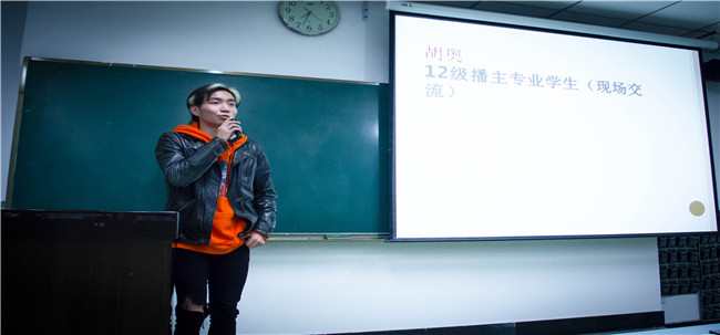 王倩茹获得过各大省级奖项以及国家奖学金,她借由自身经验,鼓励新生练就过硬的专业知识,以期成为职业中不可替代的人才。丁浩通过现场连线,结合自己在CCTV少儿频道的工作经验,讲述了自己在大学期间的成长历程,他形象地比喻道:“职场就是众人争取沙漠中的水,取之者生存,反之则难以度日。”在度过了自己事业的菜鸟期后,他进入了平淡期,看得见未来,于是他毅然决然地选择辞去工作,准备去韩国读研追求自己的执行导演梦,他的精彩发言让会场不时发出了阵阵掌声。殷若涵目前在陕西师范大学读研,她通过直播的方式,劝勉大家,大学是最自由的时光,也是最不该浪费的时光。她提到“两个不要”,“两个请要”:男生不要沉溺与游戏,大家都不要把全部的精力花在谈朋友上面;请要早早开始准备英语的学习,请早早为自己的未来做打算。胡奥是唯一一个亲临现场的师兄,他戏称自己就干了一件事:坚持喜欢的东西—跳舞,还开玩笑说学播音的但播音只是副业,让同学们忍俊不禁,但他那份对舞蹈的热爱与坚持都深深感染的在场每一位同学,也激励新生为自己喜爱的事情而努力和坚持。最后现场播放了身穿工作装的孙颖在金昌电视台为大家录的一段视频。她告诉大家不要纠结于过去,要展望未来。她用最前沿最专业的态度为同学们详细讲解了专业课的问题:比如播音、朗诵、主持等,她的讲述让新生们提高了对专业知识的重视。而在最后她对学弟学妹们的充实、愉快的大学生活也送上了美好的祝愿。