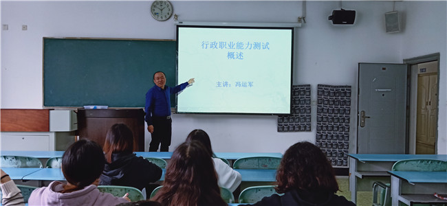 冯运军老师首先对工作室过去的一系列活动作了总结,然后为大家介绍了目前我国公招考试的具体情况,让大家对公招考试有一个比较全面的认识和了解,他鼓励大家积极去参加公招考试,不要有畏难心理,敢于攀登;冯运军老师就公招备考内容给大家作了详细的讲解,并且为大家提供了许多的学习平台,让大家在平时加强练习,他在活动中强调一定要养成关注社会时事的习惯,正确把握考试规律,不断提升自己的个人素质。