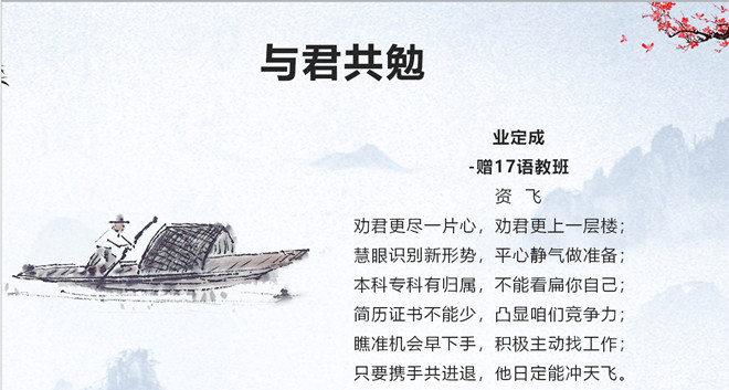 并现场朗读了自己创作的一首诗勉励同学们早日实现就业。