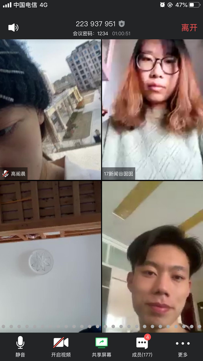 3月20日下午,为进一步落实学校新冠肺炎疫情防控工作相关要求,压实我院疫情防控工作,围绕返校前我院17级学生关心关注的问题,及时回应同学们的关切,文新学院辅导员资飞分两个批次组织召开了17级学生网络视频年级大会。会议由年级辅导员资飞主持,17级全体共计11个行政班级472名学生参加了此次大会。