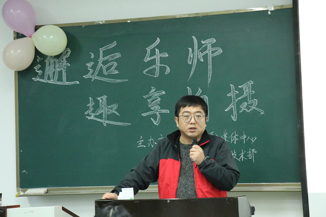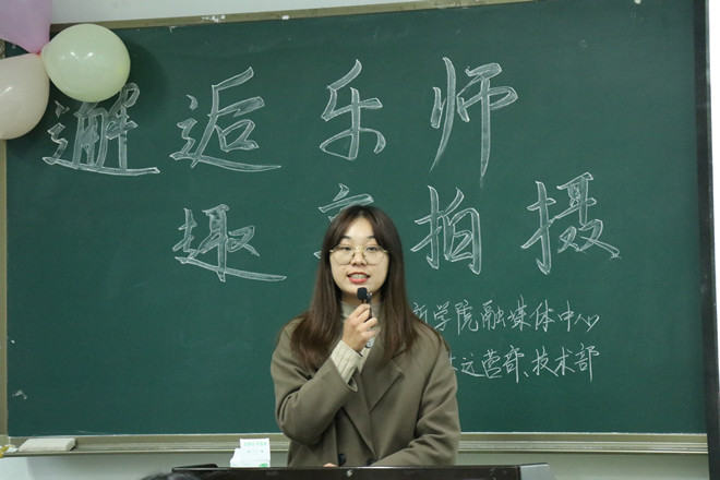 2020年12月13日晚7点,我校文学与新闻学院融媒体中心新媒体运营部和技术部于行知楼210教室举办了以“邂逅乐师,趣享拍摄”为主题的校园vlog大赛。本次活动由19级播主一班朱睿主持。文新学院教师齐虎、文新学院分团委学生会副书记范佳兴、分团委学生会副主席陈铃涵、文新学院融媒体中心主任李雪梅、文新学院易班副站长肖慧琳担任评委。