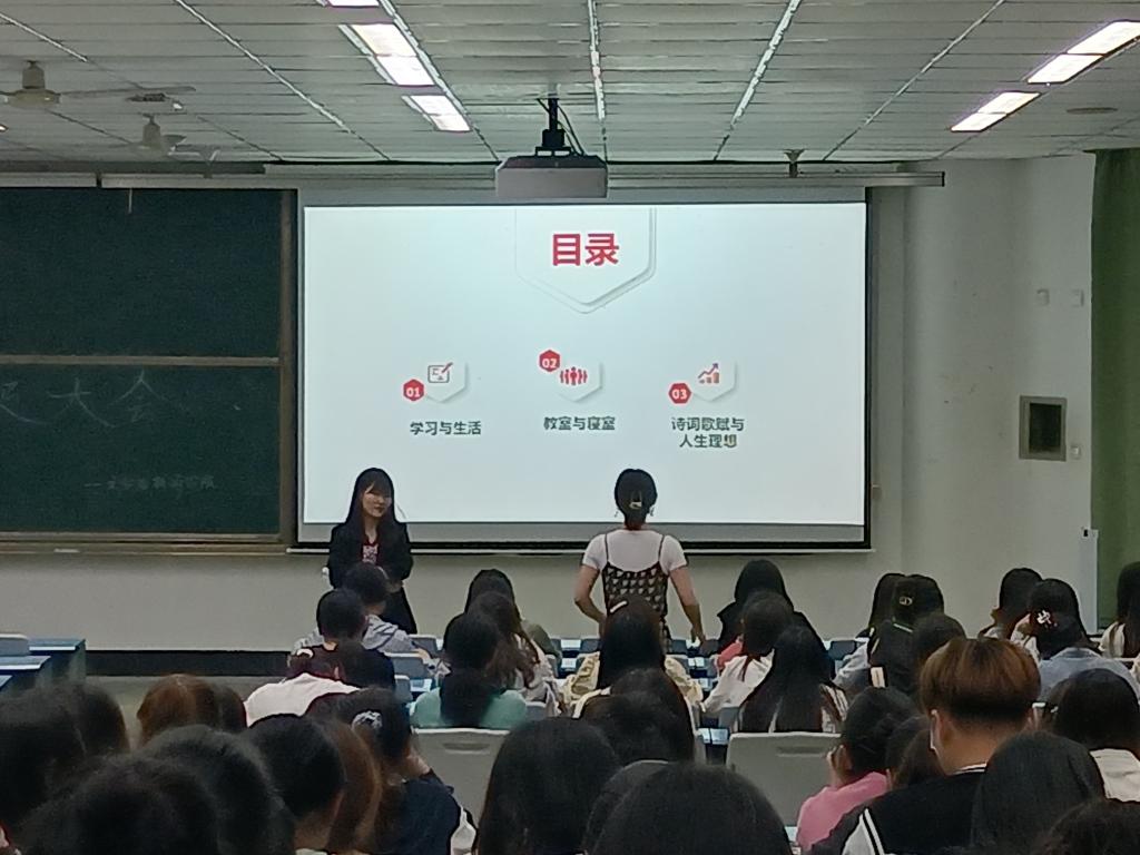 在本次大会中,18级主要强调了学生要掌握复习方法,认真对待实习,并提醒学生核对校选课学分分值,避免出现漏选及漏分情况。同时,学院将安排专题讲座,邀请优秀学长学姐返校分享考研经验;19级主要强调了学生考取教师资格证的重要性,分享了复习资料的准备以及备考相关的技巧,同时,为了帮助学生对教师资格证考试有更好的了解,此次会议还邀请了2020年国家奖学金获得者廖悦婷分享教师资格证笔试经验,2020年校长奖学金获得者肖尧分享教师资格证面试经验;20级主要从学生的学习、生活、人生目标等三个方面展开,通过互动来了解学生真实的学习生活情况并提出以下建议:一是同学们应该树立正确的爱情观、交友观;二是希望同学们充分认识自己,有明确的学习目标以及培养规划意识;三是鼓励同学们积极为考取各种证书做准备,积极参加社会实践活动,丰富校园生活。